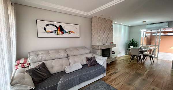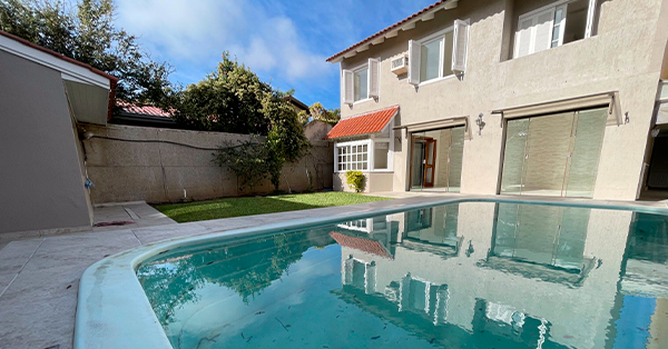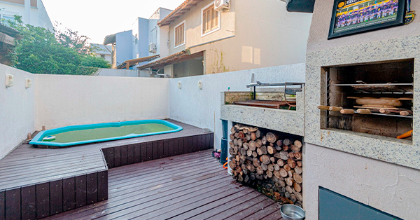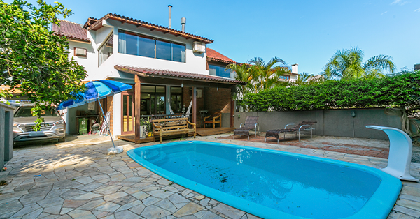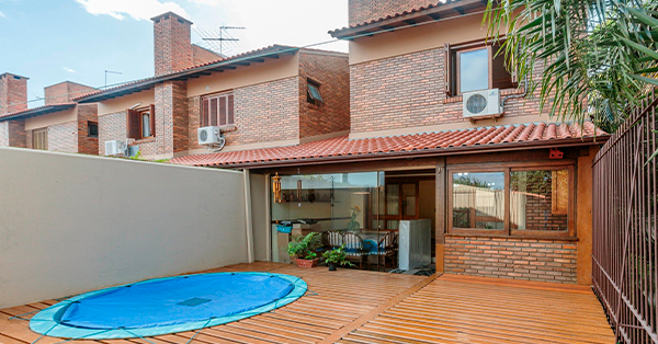 Casa Residencial em Ipanema com 3 Dormitórios, Suíte, ensolarada, ventilada, com quintal, piscina, 246m² de área privativa, sala de estar com lareira, lavabo, cozinha planejada, churrasqueira, água quente, área de serviço, armário embutido, split, sacada, 3 vagas.